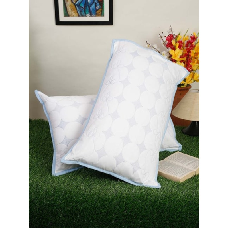 HOSTA HOMES Blue & White Cotton 140 TC ‘Zipped’ Pillow Covers – Set of 2