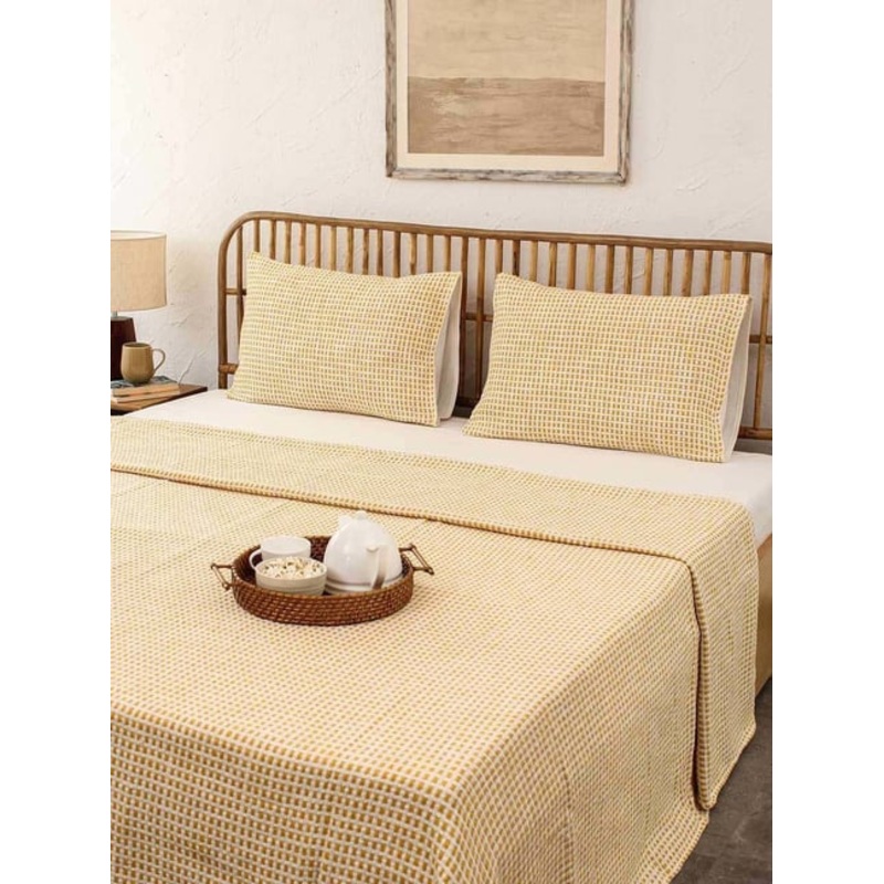Warm up in layers of coziest fabric on your bed with this set of 1 double bedcover from the Girnar collection by House This. Made of pure cotton, breathable and are skinfriendly. It adds a layer of charm to your bedroom. It will surely garner compliments from the guests.