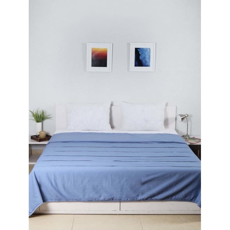Lend an attractive look to your bedroom with blue set of 1 double bed cover from House This. Tailored to perfection using cotton, this bed cover with a thread count of 180 assures a soft and soothing touch against the skin. Showcasing a pleated pattern, th