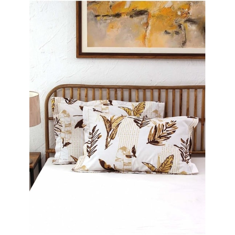 House This Vanam Brown & White Cotton 180 TC Large Pillow Cover – Set of 2