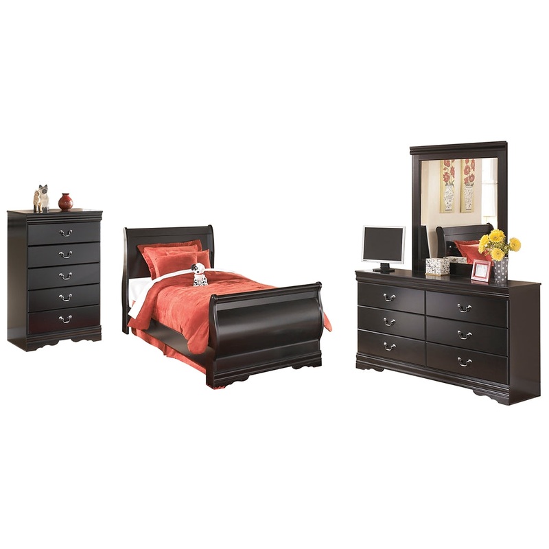 This bedroom set with sleigh bed, dresser/mirror and chest is the epitome of traditional decor. Louis Philippe-style moulding dates back to the mid-19th century when furnishings were lavish yet somewhat simple. Luxe finish adds a slightly modern touch. Smo