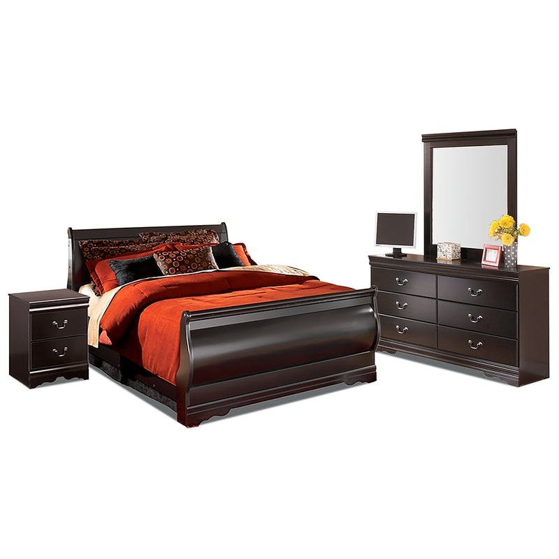 Huey Vineyard Queen Sleigh Bed with Mirrored Dresser and Nightstand