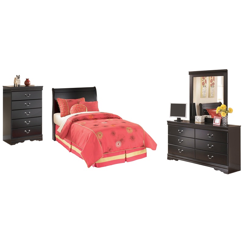 This bedroom set with sleigh headboard, dresser/mirror and chest is the epitome of traditional decor. Louis Philippe-style moulding dates back to the mid-19th century when furnishings were lavish yet somewhat simple. Luxe finish adds a slightly modern touch. Smooth-glide drawers beautifully accommodate your wardrobe.