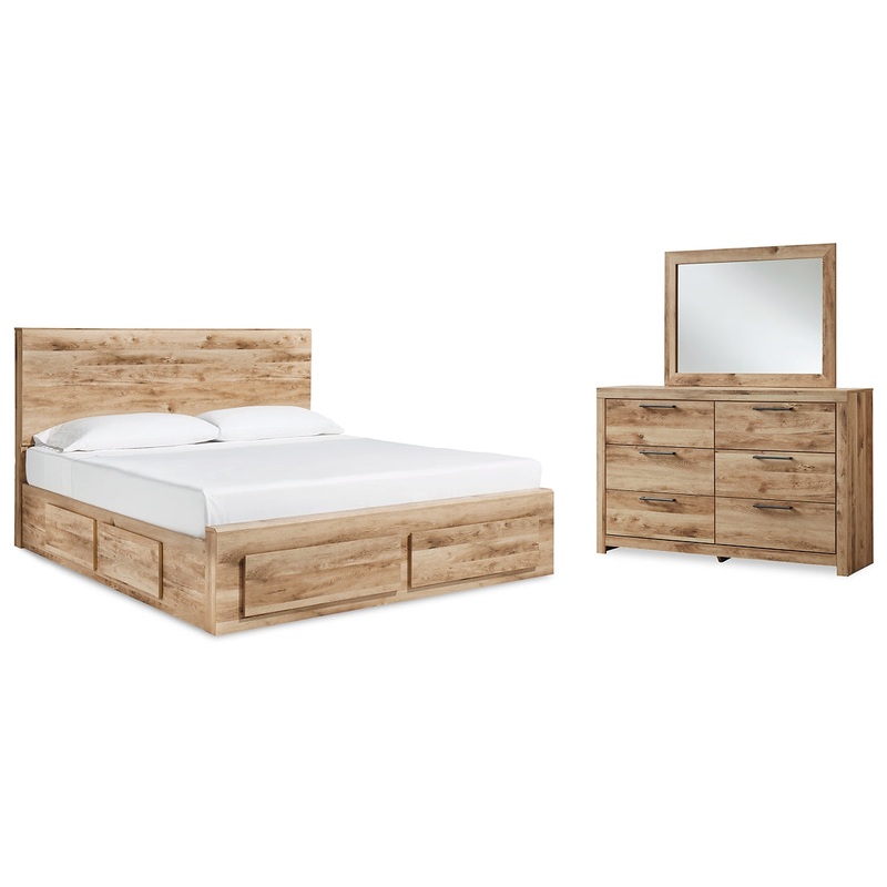 Hyanna King Panel Storage Bed with Mirrored Dresser