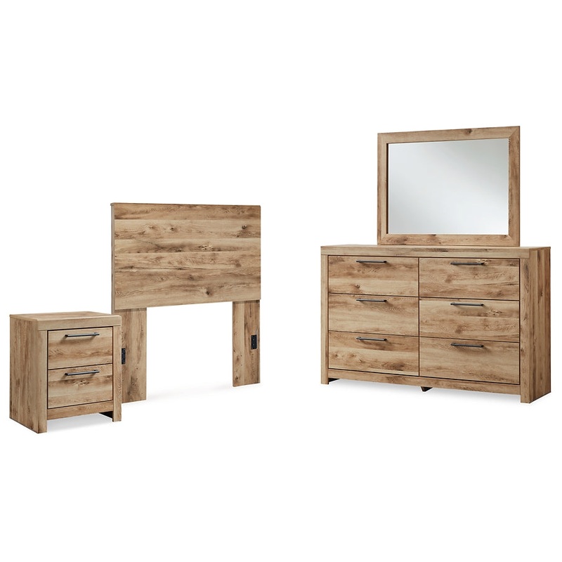 Details B1050-53: Made with engineered wood (MDF/particleboard/plywood) and decorative laminate for the right balance of affordability and durability, Golden rustic finish over replicated oak grain with authentic touch, Decorative laminate replicates natural or man-made material surfaces with consistent color, pattern and texture, ” bolts (not included) are needed to attach headboard to your existing bed frame, Assembly required, B1050B1: Includes dresser and mirror, Made with engineered wood (MDF/particleboard/plywood) and decorative laminate for the right balance of affordability and durability, Golden rustic finish over replicated oak grain with authentic touch, Decorative laminate replicates natural or man-made material surfaces with consistent color, pattern and texture, Handles in antiqued gunmetal finish, 6 smooth-gliding drawers, Drawer interiors are lined with a faux linen laminate for a clean, finished look, Framed front and pilasters, Mirror attaches to back of dresser; can also be mounted on wall horizontally or vertically, Safety is a top priority, clothing storage units are designed to meet the most current standard for stability, ASTM F 2057 (ASTM International), Drawers extend out to accommodate maximum access to drawer interior while maintaining safety, Assembly required, B1050-92: Made with engineered wood (MDF/particleboard/plywood) and decorative laminate for the right balance of affordability and durability, Golden rustic finish over replicated oak grain with authentic touch, Expertly made with engineered wood (MDF/particleboard/plywood) for the right balance of affordability and durability, Decorative laminate replicates natural or man-made material surfaces with consistent color, pattern and texture, Handles with antiqued gunmetal finish, 2 smooth-gliding drawers, Drawer interiors are lined with a faux linen laminate for a clean, finished look, Framed front and pilasters, 2 slim-profile USB charging ports, Power cord included; UL Listed, Assembly required,