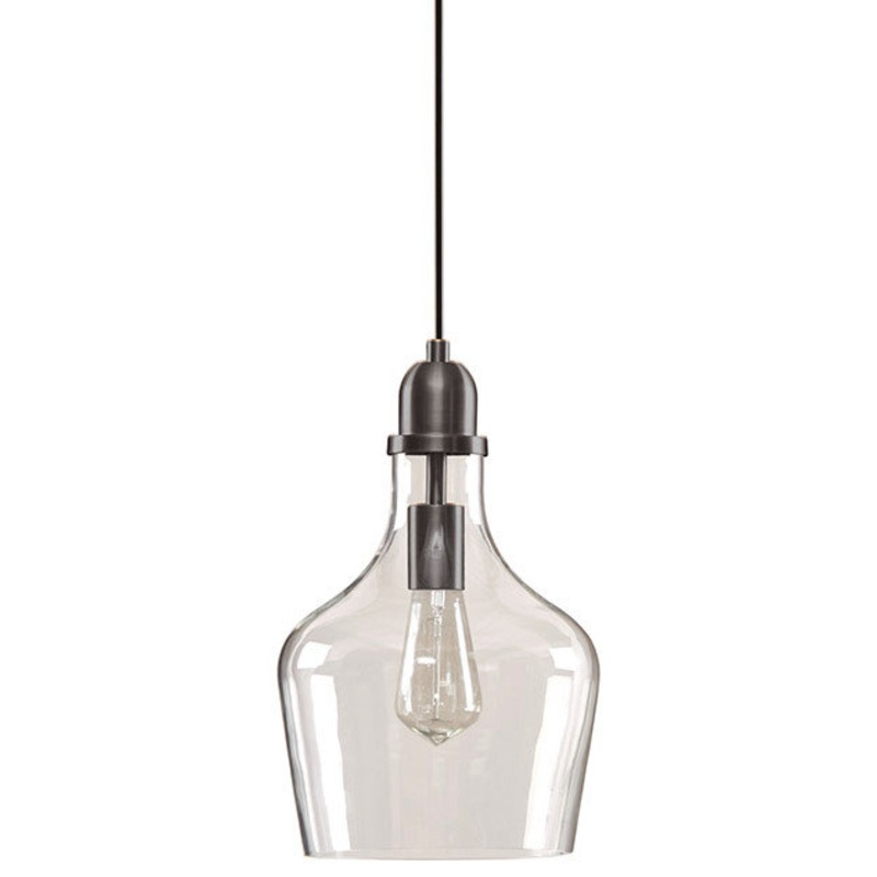 Transform your home with the INK+IVY Auburn 9" Bell Shaped Hanging Glass Pendant Light. This modern fixture features a clear hand-blown glass shade and a sleek cool bronze metal base, perfectly blending industrial, contemporary, and minimalist decor styles