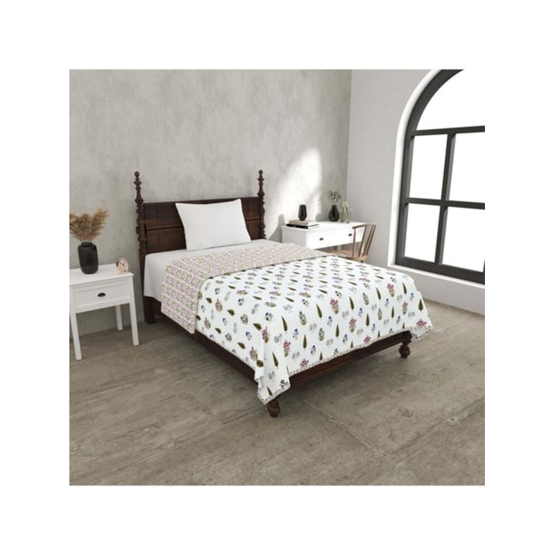 Enhance your bedroom decor with this set of 1 reversible single bed dohar from JaipurFabric. Made of 100 percent pure cotton with a thread count of 180 TC, this dohar provides a soft and cozy experience, perfect for all seasons. The reversible feature offe