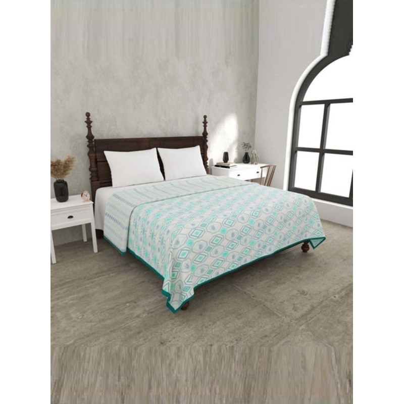 Pervade in the splendor of this set of 1 reversible AC dohar from the house of JaipurFabric. Crafted from mulmul cotton, it exudes a stylish geometric pattern that further lends it a finial touch. With a thread count of 150, it ensures endearing comfort to your tired nerves.