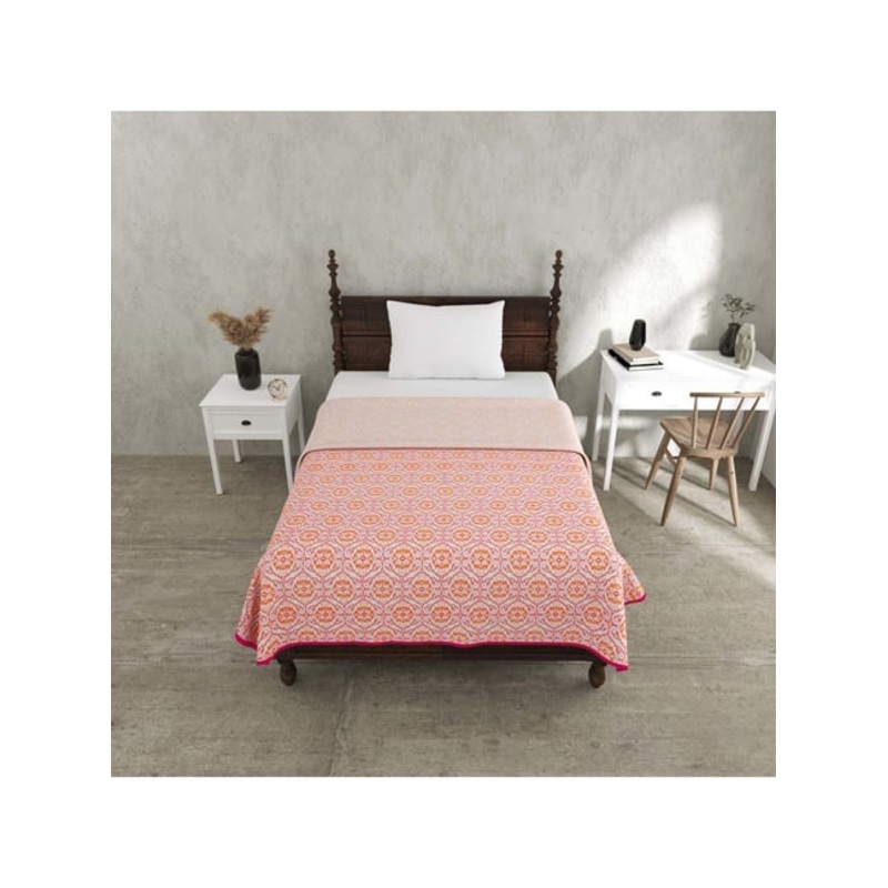 JaipurFabric Pink Mulmul Cotton 180 TC The Illusion Reversible Single Bed Dohar