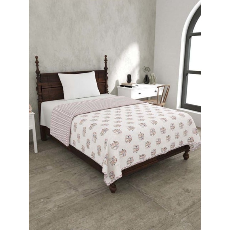 JaipurFabric Pink Pure Cotton 180 TC Elephant Reversible Single Bed Dohar