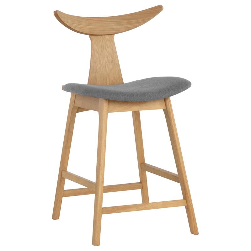 This attractive counter stool is stocked in light and dark grey upholstery with tapered legs in a distressed natural finish. Features a curved back giving it a sleek and modern look. To match the seem, you can also get a dining chair from the Jaxton Collec