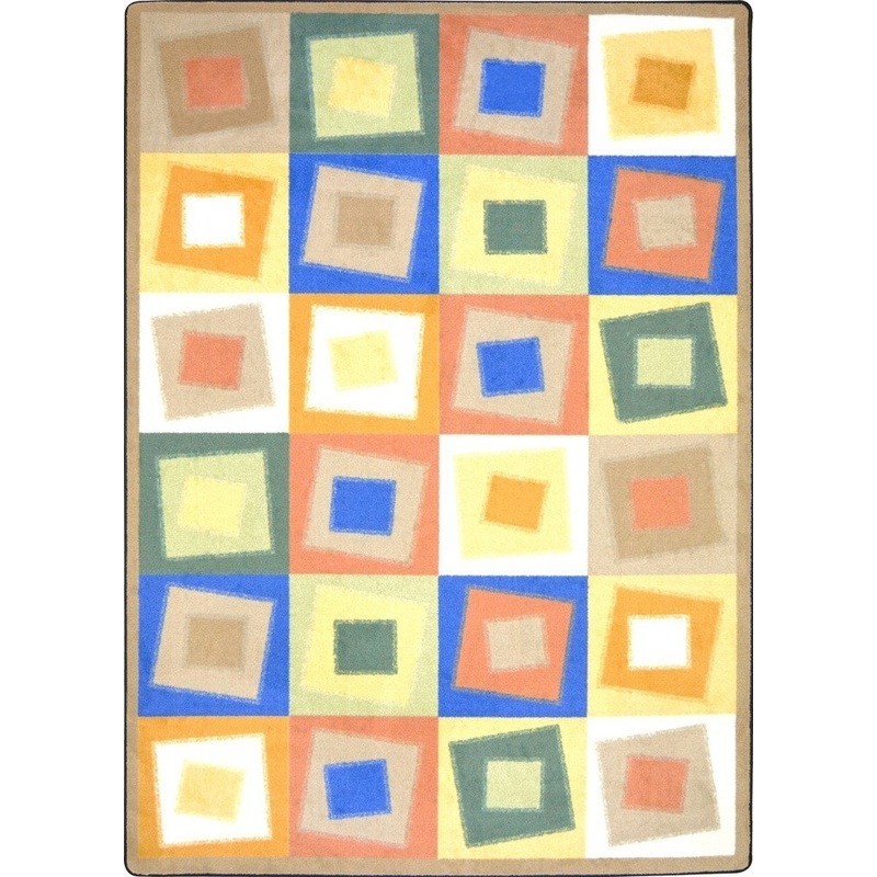 This unique carpet with slightly off-balance squares will work equally well as an accent rug under a coffee table or a cool place for kids to kick back. Color options define the mood for fun or sophistication. -Backing: SoftFlex -Color: Softs -Material: 10