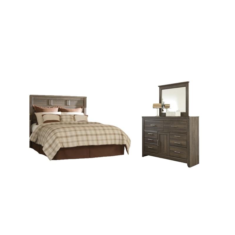 Juararo Queen Panel Headboard Bed with Mirrored Dresser