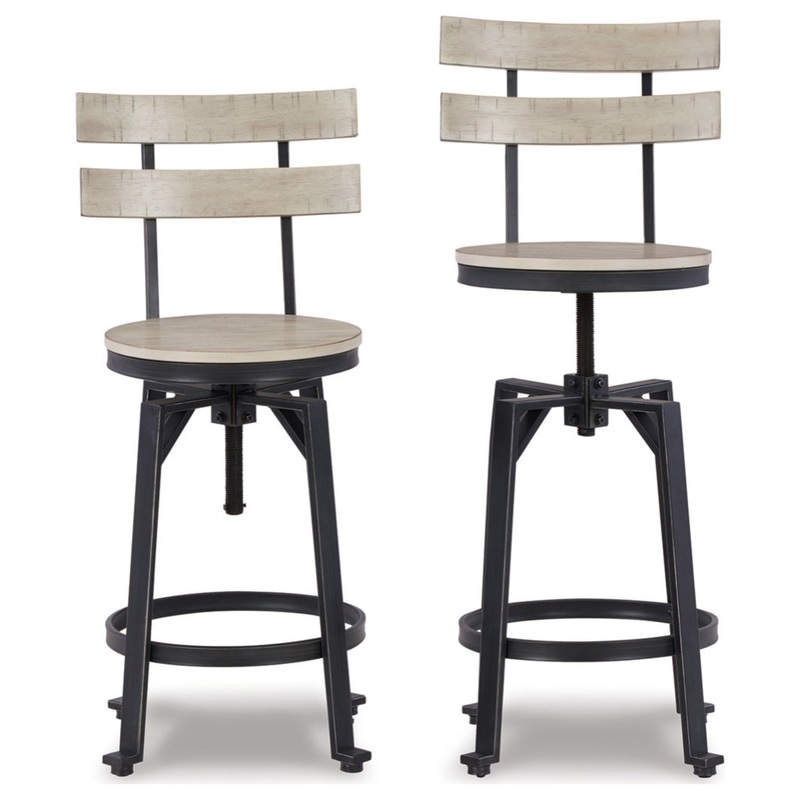 This bar stool features an acacia veneer seat and back in a whitewashed finish and a dark metal frame for a farmhouse fresh feel. The adjustable height swivel seat raises the bar on custom comfort and adds a rustic industrial element to your decor.