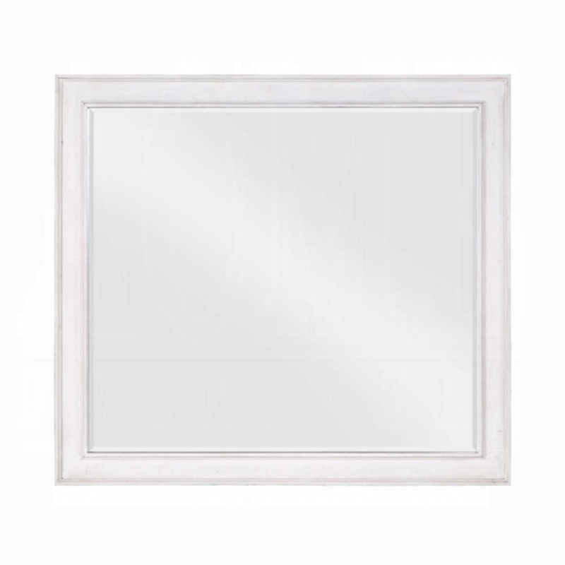 The Katia collection is perfect for creating a modern rustic or farmhouse aesthetic. Merging old and new design features and finishes. The bed features a channel-tufted headboard and footboard in gray linen that pops against the white frame. The case goods