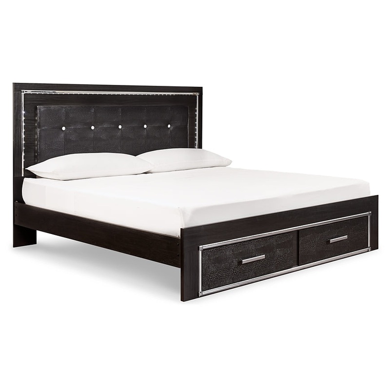 Rest easy. The luxurious look youve been dreaming of is yours for the takingat a price sure to put you at ease. This striking storage bed brings a sense of old Hollywood with a contemporary flair. A deep, dark finish, faceted chrome-tone accents and LED lighting exude Hollywood-chic style to the max. Padded windowpane-stitching on the sleek, black upholstery infuses a sumptuous look thats upscale and indulgent, and utterly on trend. A wireless remote allows you to control the color and brightness to suit the mood.