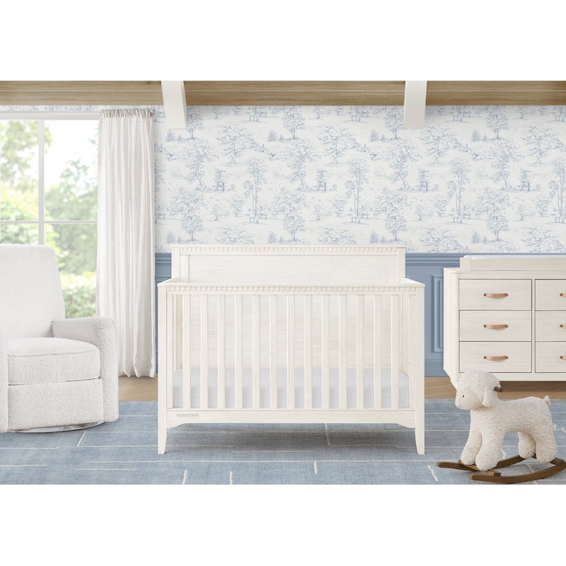 The Kendall 6-in-1 Convertible Crib by Delta Children is an elegant mix of timeless style and modern features. Crown and dentil molding offer classic design notes, and its lightly textured finish adds a vintage touch. Plus, it effortlessly converts from a