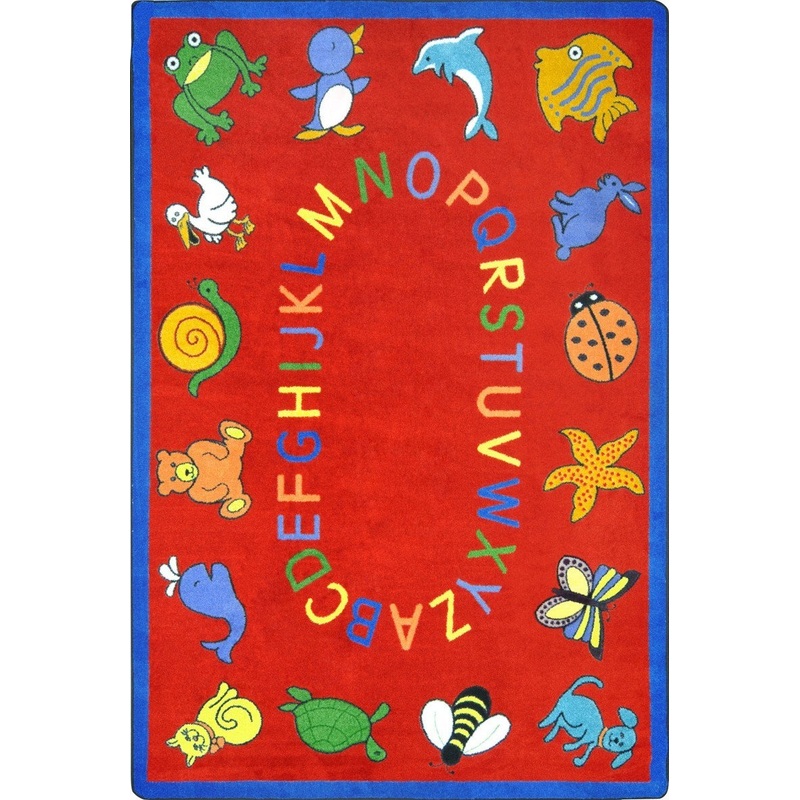 Nothing fancy, just good plain fun with this rug bordered by animals ranging from a blue dog to a yellow cat to a purple penguin. There are lots of places for children to sit during group discussion or story time. Perfect for early childhood. -Certificatio