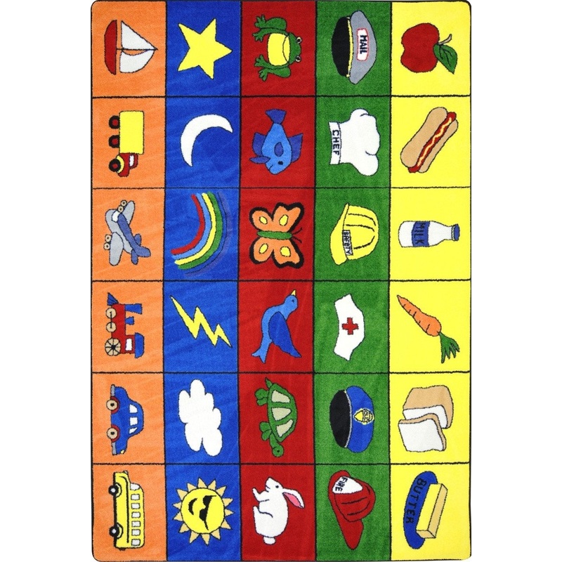 Teach your children about healthy eating, community helpers, nature friends, weather, and transportation with the fun cartoon images on this captivating organizational carpet. -Certifications: CRI Green Label Plus Warranty: Joy Tuff Rug Lifetime Limited Wa