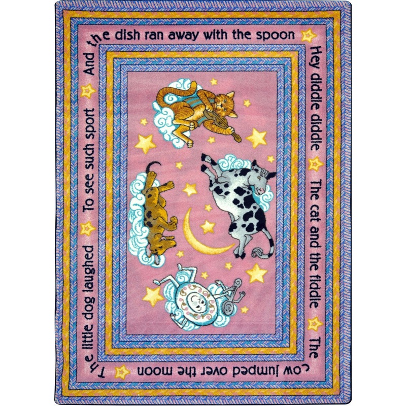 Young children will immediately recognize the playful characters from the familiar nursery rhyme Hey Diddle Diddle. With a braided-rug design and bright, clear colors, this carpet will make the infant to pre-school children's spaces cheerful and cozy. -Cer