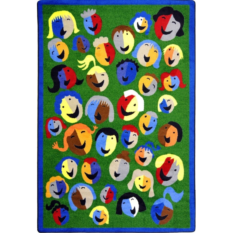 Emphasize our multicultural society with this joyful children's carpet. Teach children to celebrate our differences while creating unity through play. -Certifications: CRI Green Label Plus Warranty: Joy Tuff Rug Lifetime Limited Warranty -Backing: SoftFlex