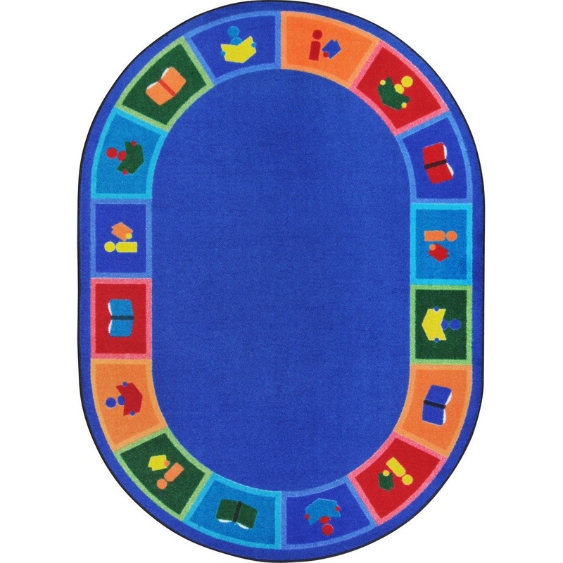 If you want to emphasize the importance of reading in your library or classroom, choose this organizational carpet with colorful rows of squares depicting caricatures of kids reading books. Size C has four rows with 20 squares total and size D has five row