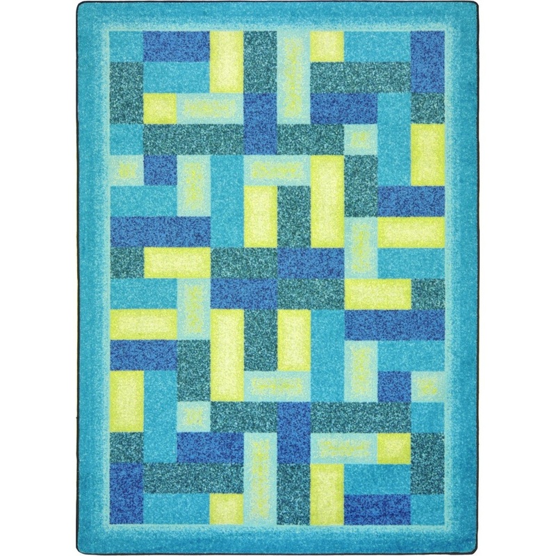 Off-Beat's maze-like labrynth of colorful rectangular art was inspired by early video games. This lively rug design is equally suited to a casual reading area as well as a teenage gameroom. -Certifications: CRI Green Label Plus Warranty: Joy Tuff Rug Lifet