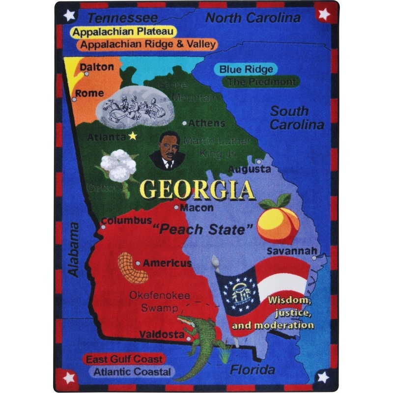 Georgia will be on your mind, too, with this stunning carpet featuring state divisions, major cities, famous citizens and locations, and the beautiful Georgia flag.