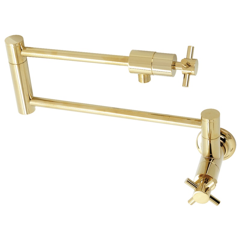 This faucet boasts bold, sleek design with its cylindrical styling. As an excellent tool to quickly, easily, and stylishly fill pots, eliminate strain on your joints. Pot-fillers are useful gadgets placed directly above the stove, providing easily accessible water. The foldable swing arms of this pot filler allow for extendable reach of up to 21.5-inch of length and provide long-lasting function due to their sturdy brass construction. Additionally, the dual handles prevent unwanted water spillage while enhancing the modern theme.