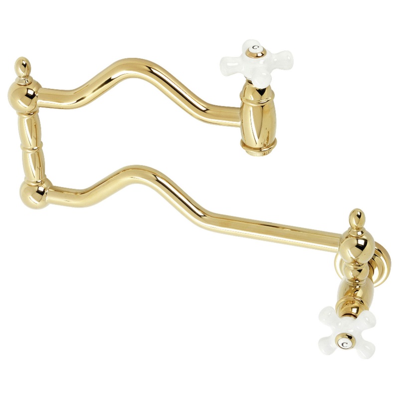 A lavish spark of traditionally stylized glamour is brought to your kitchen ensemble with this beautiful faucet. As an excellent tool to quickly, easily, and stylishly fill pots, eliminate strain on your joints. Pot-fillers are useful gadgets placed directly above the stove, providing easily accessible water. The foldable swing arms of this pot filler allow for extendable reach of up to 22-inch of length and provide long-lasting function due to their sturdy brass construction. Additionally, the dual handles prevent unwanted water spillage while enhancing the traditional theme.
