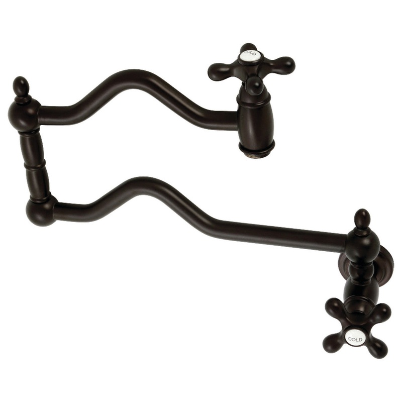 A lavish spark of traditionally stylized glamour is brought to your kitchen ensemble with this beautiful faucet. As an excellent tool to quickly, easily, and stylishly fill pots, eliminate strain on your joints. Pot-fillers are useful gadgets placed directly above the stove, providing easily accessible water. The foldable swing arms of this pot filler allow for an extendable reach of up to 22″ of length and provide long-lasting function due to their sturdy brass construction. Additionally, the dual handles prevent unwanted water spillage while enhancing the traditional theme. Kingston Brass KS210.AX Features: Covered under Kingston Brass’ 10-year limited warranty Constructed of brass Coordinates with products from the Heritage line seamlessly Dual cross handles Kingston Brass KS210.AX Specifications: Height: 11″ Width: 24-1/8″ Faucet Hole: Single Faucet Hole Size: 1-3/8″ Spout Reach: 22″ Flow Rate: 3.8 gallons per minute Connection Size: 1/2″