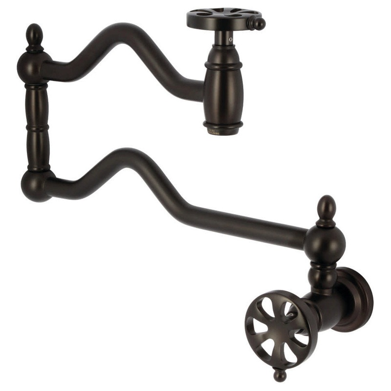 The exquisite design of this faucet tastefully flatters the elegant architecture of traditional homes with its fine detailing. The foldable swing arms of this pot filler allow for extendable reach of up to 24-1/8" of length and provide long-lasting functio