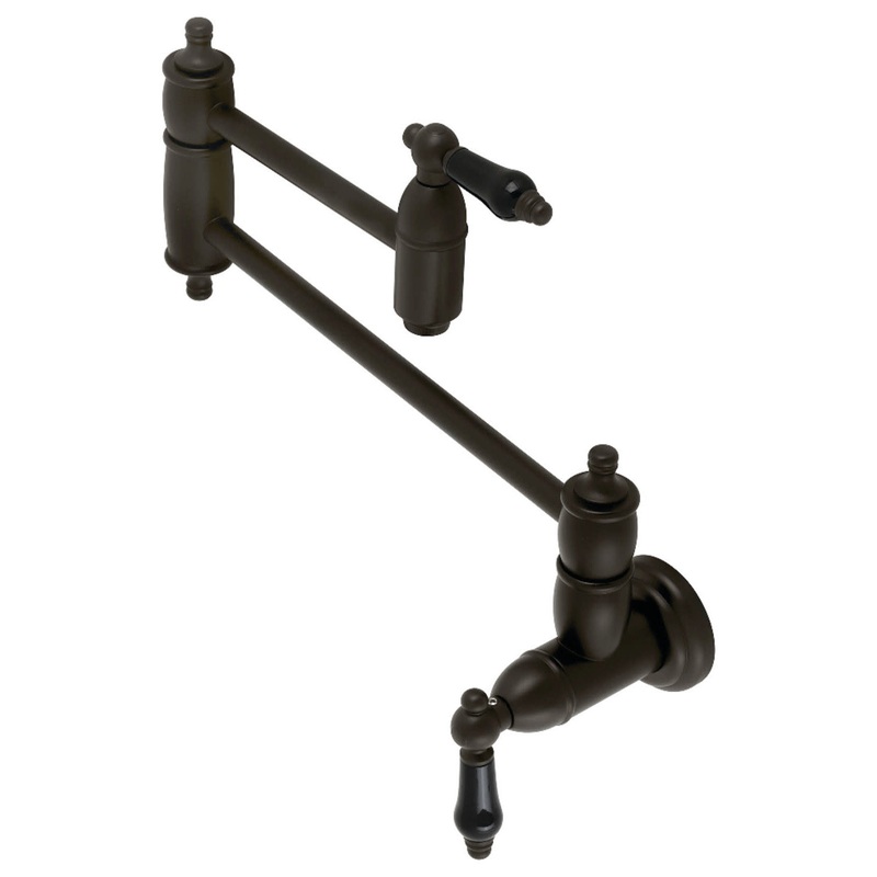 Crafted in commendations to English nobility, the exemplary design of this faucet manifests regality and elegance with its porcelain handles. As an excellent tool to quickly, easily, and stylishly fill pots, eliminate strain on your joints. Pot-fillers are useful gadgets placed directly above the stove, providing easily accessible water. The foldable swing arms of this pot filler allow for extendable reach of up to 20″ of length and provide long-lasting function due to their sturdy brass construction. Additionally, the dual handles prevent unwanted water spillage while enhancing the traditional theme. Kingston Brass KS310.PKL Features: Covered under Kingston Brass’ 10 year limited warranty Constructed of brass Coordinates with products from the Duchess line seamlessly All hardware required for installation is included ADA compliant Kingston Brass KS310.PKL Specifications: Height: 8″ Width: 20″