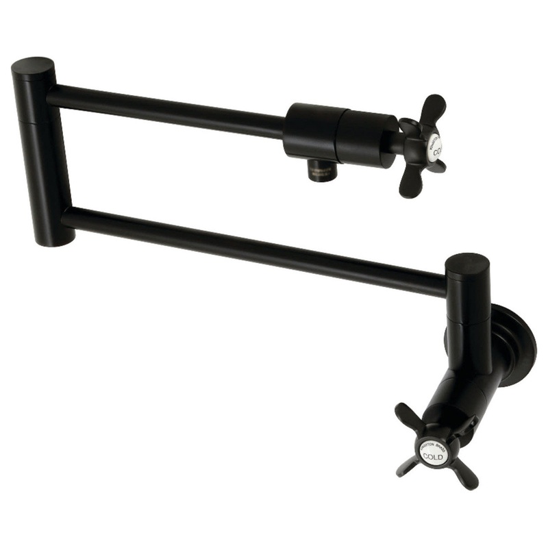 The spirit of the Victorian Era finds itself elegantly and eagerly spun into the unique design of this faucet. As an excellent tool to quickly, easily, and stylishly fill pots, eliminate strain on your joints. Pot-fillers are useful gadgets placed directly above the stove, providing easily accessible water. The foldable swing arms of this pot filler allow for an extendable reach of up to 21-1/2″ of length and provide long-lasting function due to their sturdy brass construction. Additionally, the dual handles prevent unwanted water spillage while enhancing the traditional theme. Kingston Brass KS410.BEX Features: Covered under Kingston Brass’ 10-year limited warranty Constructed of brass Coordinates with products from the Essex line seamlessly Dual cross handles Kingston Brass KS410.BEX Specifications: Height: 9-5/8″ Width: 23-1/2″ Faucet Hole: Single Faucet Hole Size: 1-3/8″ Spout Reach: 21-1/2″ Flow Rate: 3.8 gallons per minute Connection Size: 1/2″