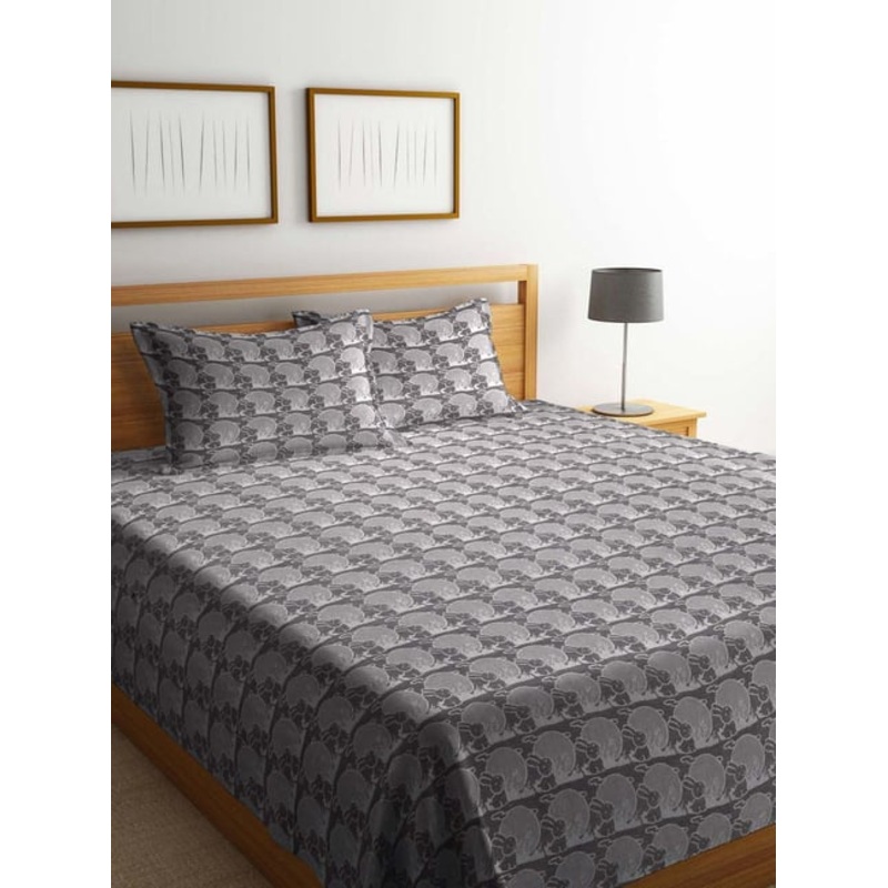 Klotthe Grey Cotton 350 TC Double Bed Cover with 2 Pillow Covers