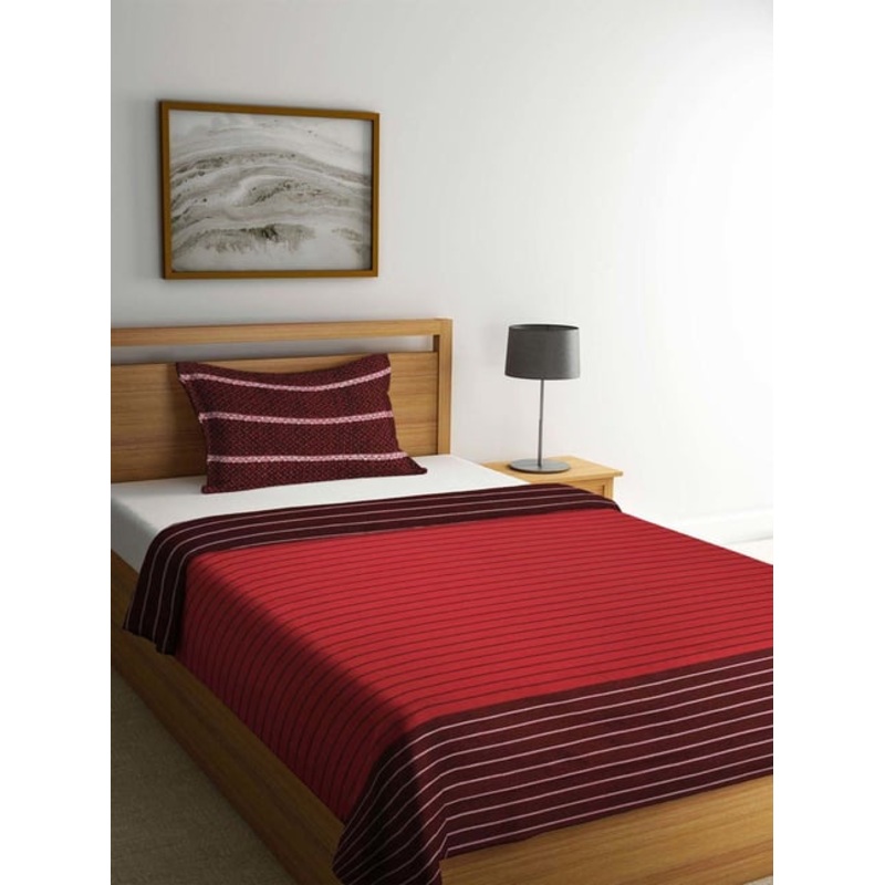 Bring home this set of 1 single-sized bed cover and 1 pillow cover from Klotthe that have been crafted in premium quality cotton and will be extremely durable. Fabricated with a 300 TC, this set is sure to make you feel relaxed and at peace after a stressf