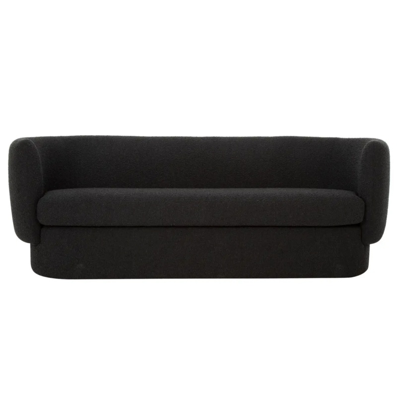 Soft as a cloud while exuding contemporary cool, the Koba sofa comes in black with spacious seating for four. This deeply seated sofa’s curved lines, extra-comfort foam filling and solid wood construction make this couch soft and supple at the same time.