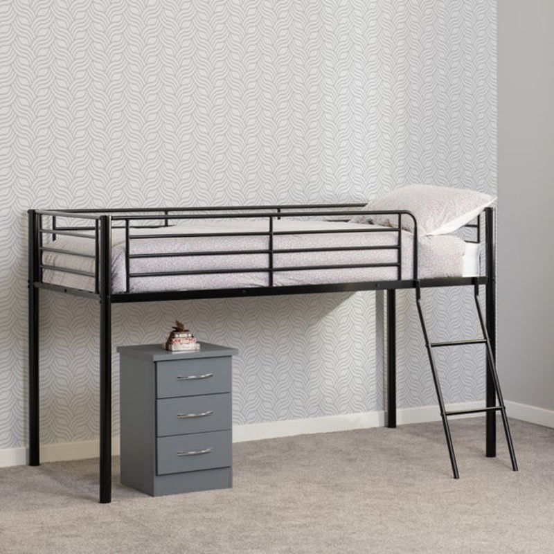Looking for a bed that’s both stylish and practical? Look no further than the Kora Mid Sleeper Bed! With a strong metal frame and a choice of colours, this bed is perfect for rooms with limited space. And with storage space underneath the frame, you’ll have plenty of room to keep all your belongings. Plus, it’s flat-packed for easy assembly – it’s the bed of your dreams!