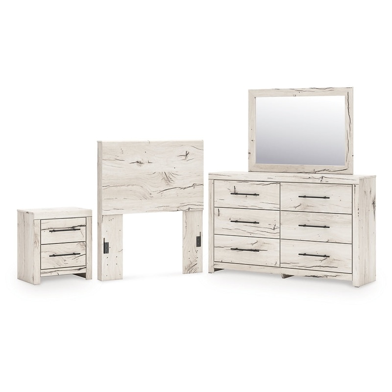 Lawroy Twin Panel Headboard with Mirrored Dresser and Nightstand