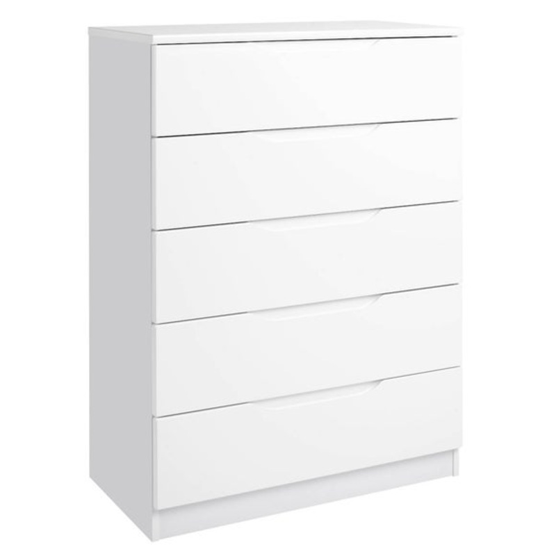 The Legato 5 Drawer Chest features a contemporary style with a unique handle-less design and a high gloss finish. Constructed from high quality components this 5 drawer chest makes for a practical and stylish storage solution for your bedroom. Part of the