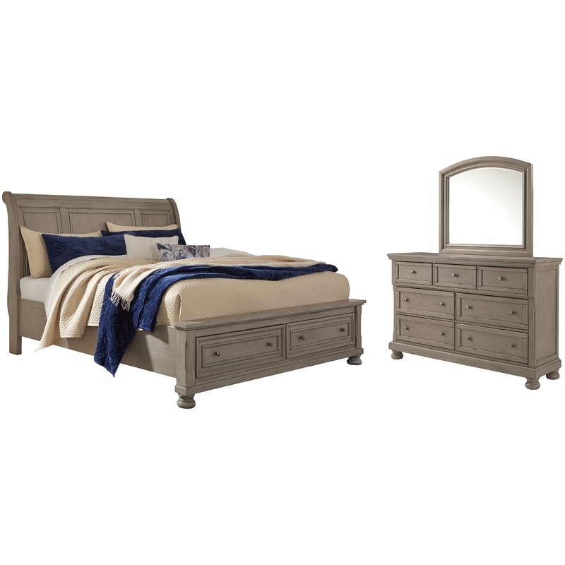 | Details | B733B1: Made of veneers, wood and engineered wood, Silvertone patina hardware, 7 smooth-gliding drawers with dovetail construction, Top drawers felt-lined, 1 felt-lined jewelry tray, Mirror attaches to back of dresser, Assembly required, Includes tipover restraint device, B733B9: Made of veneers, wood and engineered wood, Includes headboard, footboard with storage, slats and rails, Silvertone patina hardware, 2 smooth-gliding drawers with dovetail construction, Bed does not require additional foundation/box spring; accommodates most zero clearance adjustable bases with the addition of a bunkie board, Mattress available, sold separately, Assembly required, |