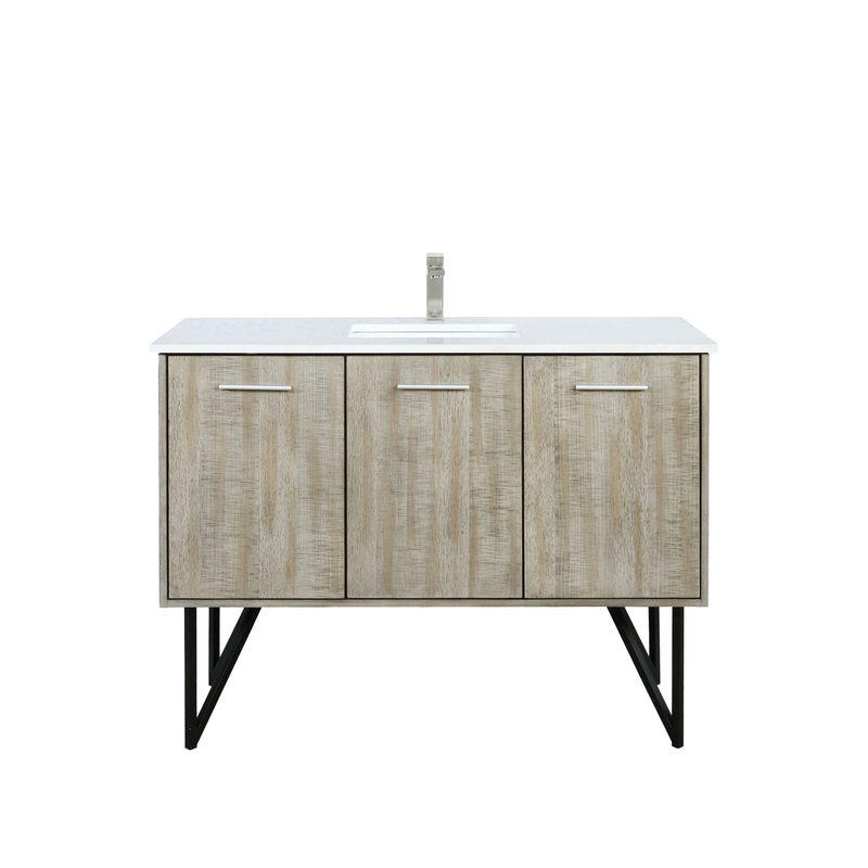 The Lancy vanity collection combines simplicity and elegance to achieve enhanced flexibility and easy adaptability in any modern or farmhouse bathroom decor. Featuring a simple, classic cabinet design with a white vanity top with wide edges, this cabinet allows easy storage of bathroom essentials and personal care items while keeping everything neat and clean. The cabinet enjoys a durable construction made with rustic acacia wood and a strong metal structure for enhanced stability, as well as a white vanity top with a single-hole faucet spread for effortless installation and flexibility. Simple yet attractive and versatile, this vanity cabinet with mirror adapts to every decor setting while providing functional storage space!Enjoy a successful combination between durability, aesthetics and functionality while creating an upscale look in your bathroom!