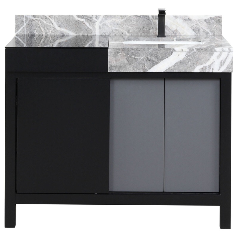 The Zilara bathroom vanity collection features a sophisticated yet elegant design that doesn’t sacrifice practicality, perfect to adorn your bathroom decor while enjoying plenty of storage space! Featuring a superb combination of a black and grey cabinet that meets the luxurious aesthetics of the Castle grey marble pattern of the vanity top, this cabinet will complement any modern or industrial bathroom by adding simplicity and a sense of depth. It has large cabinets and spacious countertops so you can enjoy the extra space for organizing your essentials, and a single-hole faucet spread for hassle-free installation!A gorgeous bathroom cabinet with a generous functional storage space that plays with elegant colors and exceptional details to create a unique decor accent that doesn’t overpower the bathroom aesthetics!