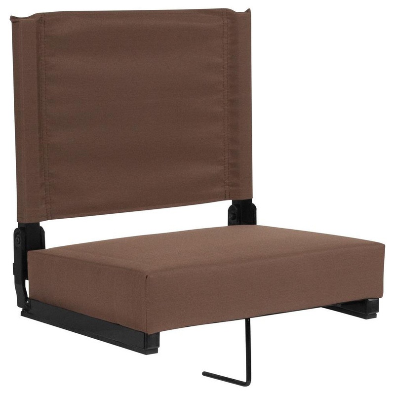 Love your team but hate those bleachers? Ever feel like you’re the one who got tackled when the game’s over? Now there’s a better way! Watch the game from the comfort of your Ultra-Padded Stadium Chair. Compact and portable folding chair with a built-in carrying handle and sturdy grip, this stadium seat is the lightest of its kind. Weighing in at a mere 7.6 pounds, this amazing seat can support up to 500 pounds to accommodate most users. With its 3 inch foam seat, you’ll be so comfortable you won’t want the game to end. If you’re worried about safety this padded stadium chair features rubber strips on the bottom to prevent the seat from sliding. A built-in bleacher hook provides added stability when sitting on wooden and metal bleachers and easily pivots out of the way to sit on the ground. Did you jump up to cheer and forgot you had your drink or nachos in your hand? Fear not, this bleacher chair can be spot cleaned with a wet cloth, for tough stains use a solvent based cleaner. Not just for game day, take your game day chair with you when you go camping, to the beach, and to outdoor concerts.