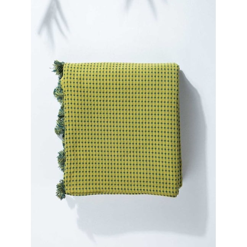 Lime Green Code Shadow Woven Cotton King Bedcover