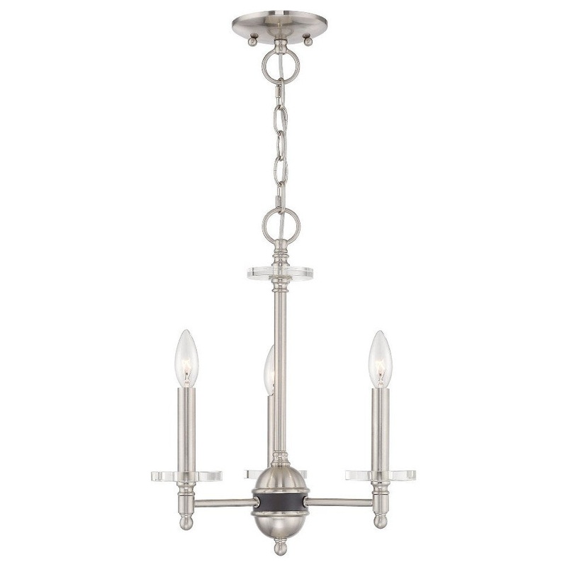 Add an aura of sophistication and elegance with thBancroft Three Light Brushed Nickel Clear *UL Approved: YES Energy Star Qualified: n/a ADA Certified: n/a *Number of Lights: Lamp: 3-*Wattage:60w Candelabra Base bulb(s) *Bulb Included:No *Bulb Type:Candela