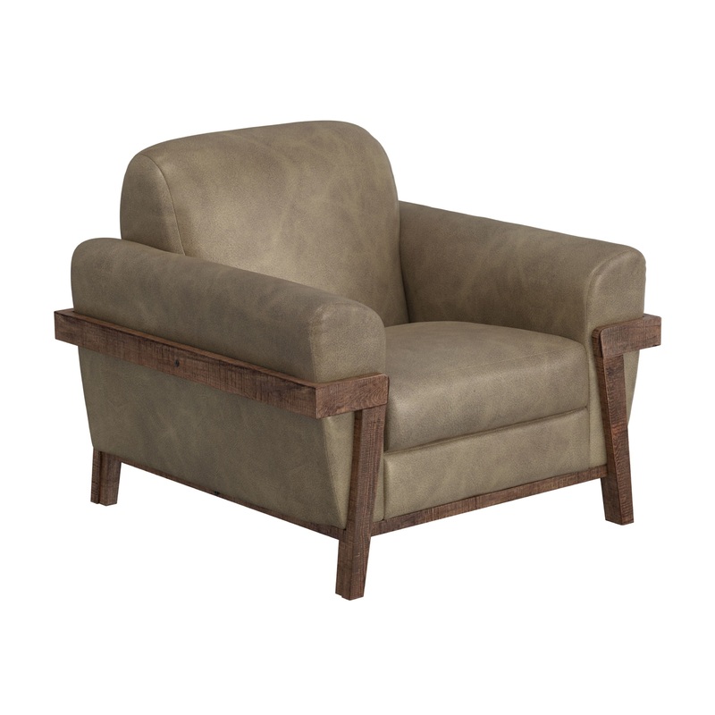 Wooden Frame & Base, Armchair. Introducing our captivating Loft Brown Collection, where traditional design seamlessly merges with mid-century modern details in this stunning transitional piece. With its distinctive exposed pine wooden legs and frame, retro
