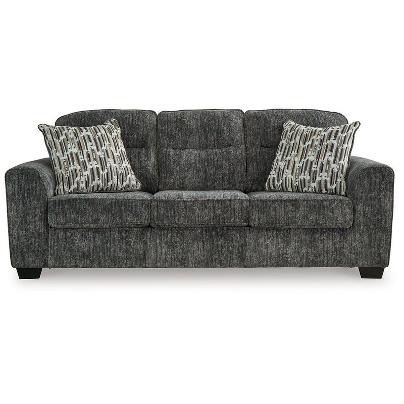 This sofa speaks to those drawn to fresh, contemporary style with richly neutral appeal. Subtle and sophisticated, the plush upholstery and dark tri-block legs are a natural complement for so many color schemes. Two accent pillows make the seating even mor