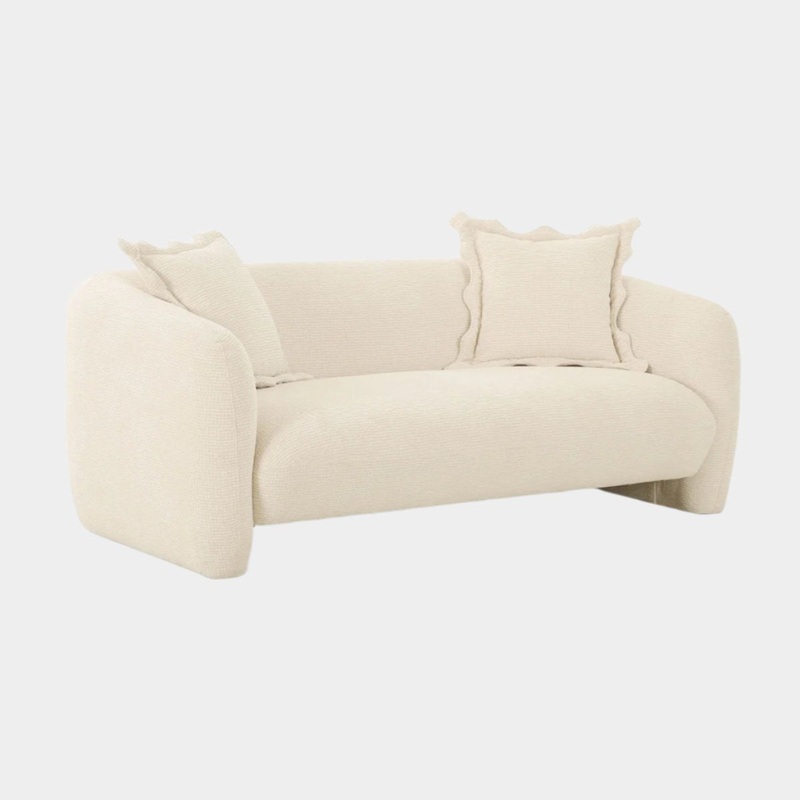 Description:The Lou Sofa/Loveseat, available in Cafe Au Lait Performance Velvet or Sandstone Textured Fabric, is as soft and cloudlike as it looks. Its playful design includes darling accent pillows with squiggly edges, adding a touch of whimsy to your liv
