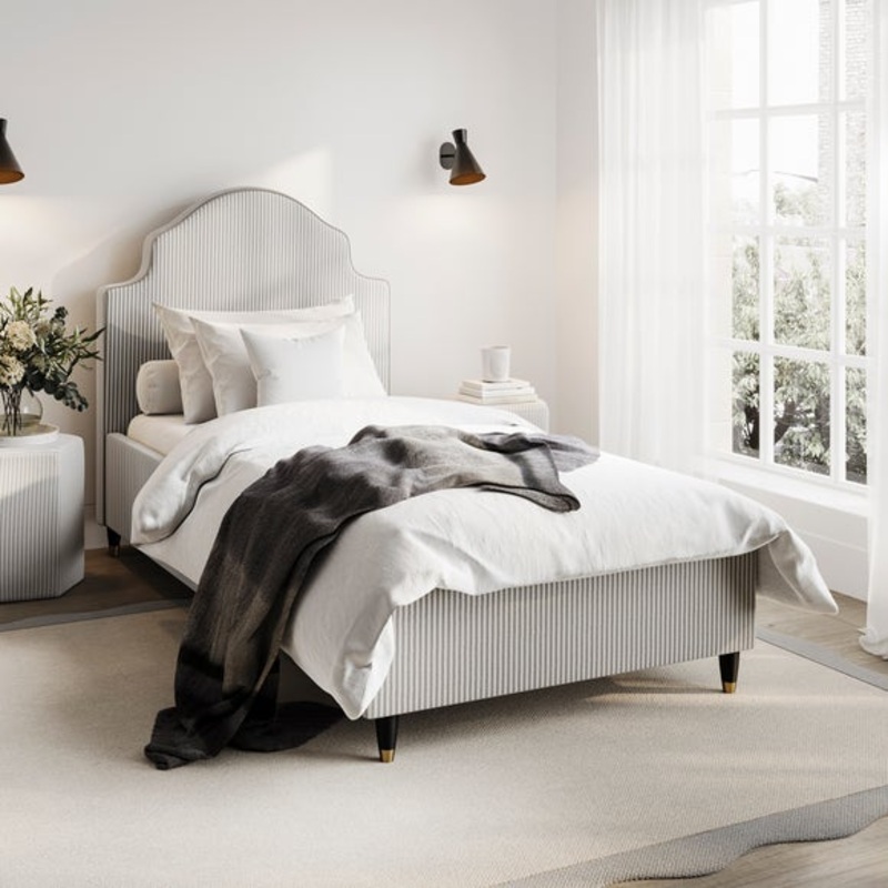 With a luxurious cotton upholstery in a soft grey tone, the LPD Monterey Cotton Fabric Bed Frame offers elegant styling and comfort. Its ornate headboard and brass-capped legs add decorative flair, while sprung slats provide essential mattress supportan ideal blend of beauty and functionality.